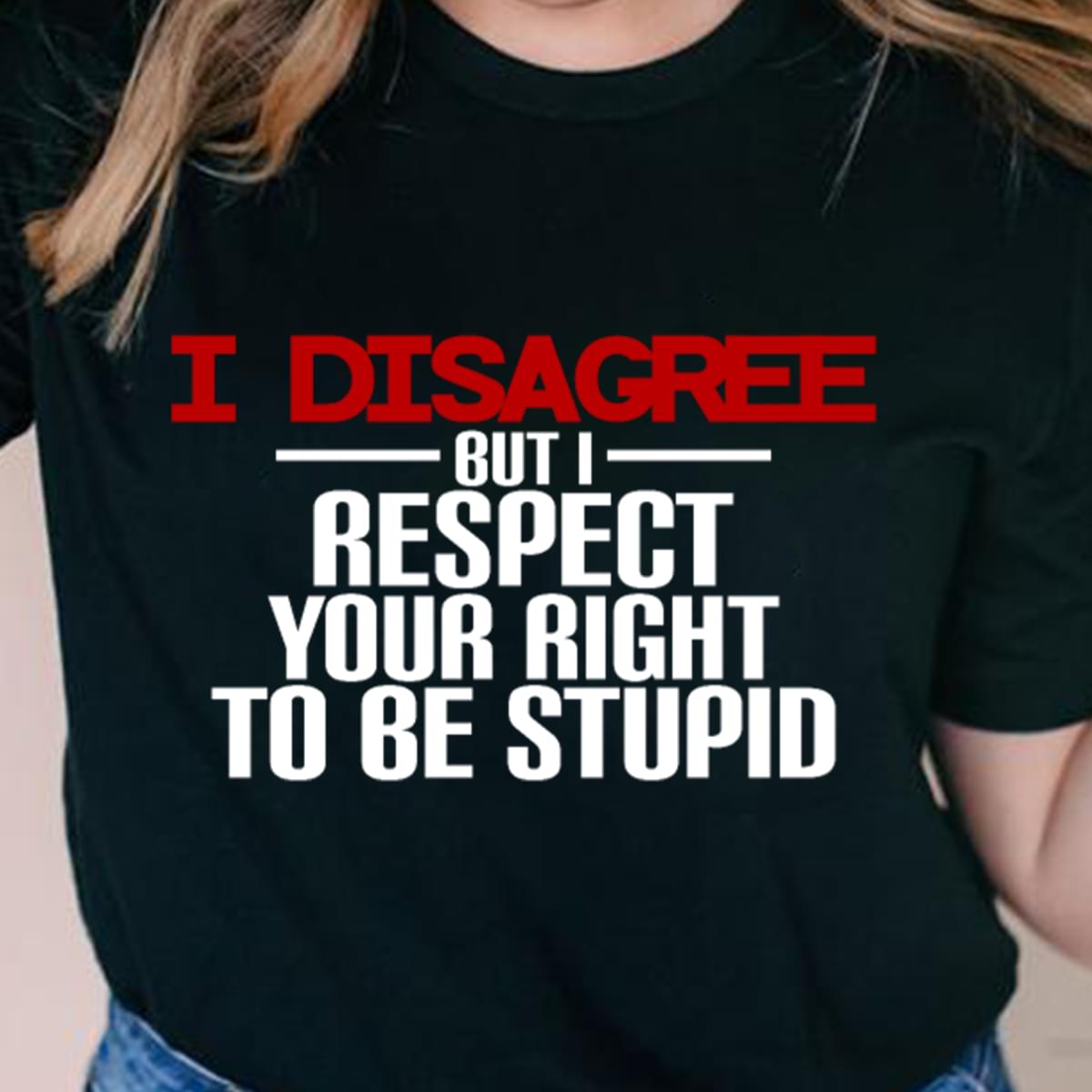 Adore I Disagree But I Respect your Right To Be Stupid T-Shirt? Turn it into something truly special with our customization options! Pick your favorite design, colors, and style to showcase your individuality, convey a meaningful message, or design the ultimate one-of-a-kind gift.