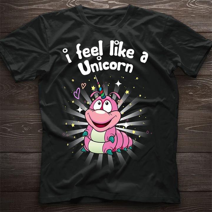 I Feel Like A Unicorn Pink Cartoon Caterpillar With Colorful Horn Shirt