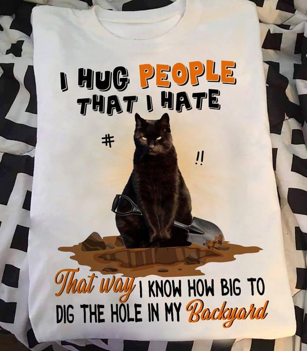 I Hug People That I Hate That Way I Know How Big To Dig The Hole In My Backyard Black Cat Shirt