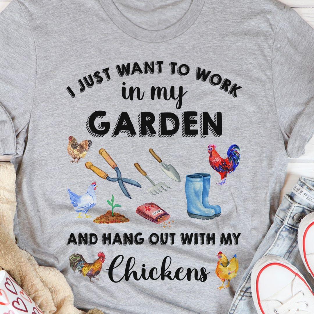 I Just Want To Work In My Garden And Hang Out With My Chickens Shirt
