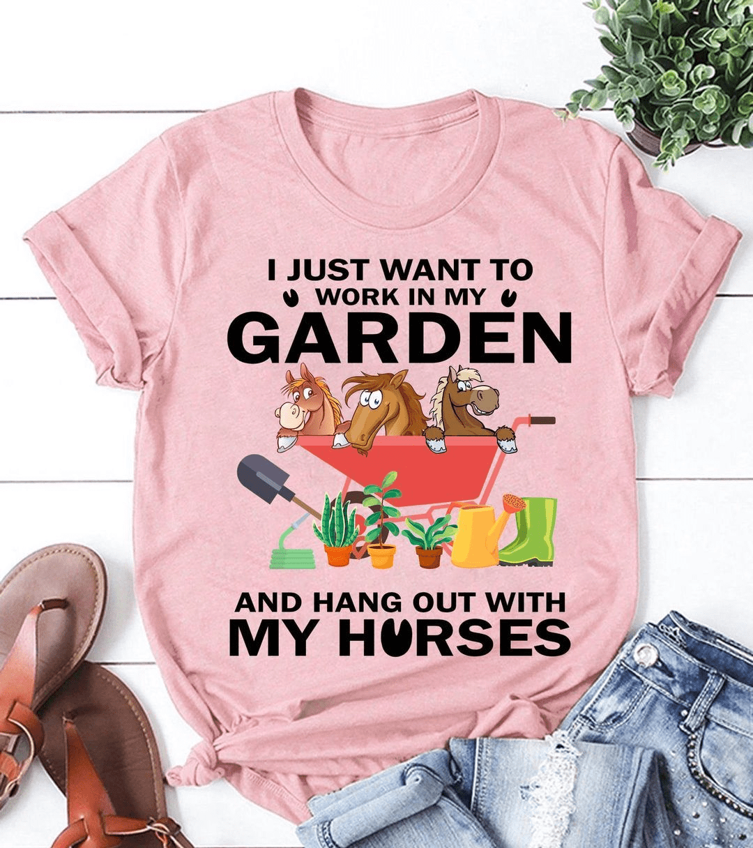 Adore I just want to work in my Garden and hang out with My Horses T-Shirt? Turn it into something truly special with our customization options! Pick your favorite design, colors, and style to showcase your individuality, convey a meaningful message, or design the ultimate one-of-a-kind gift.