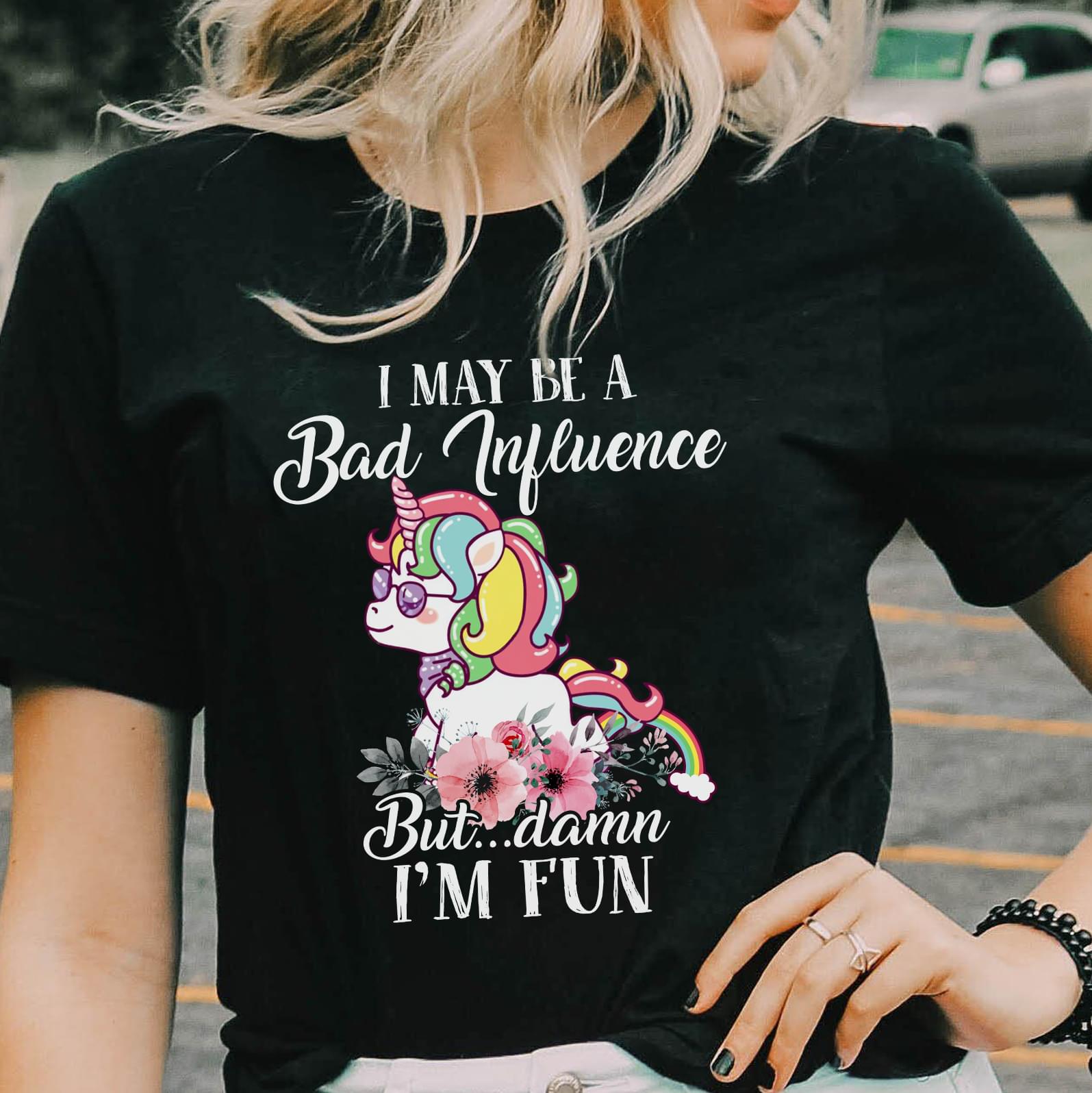 I May Be A Bad Influence But Damn I'm Fun Cute Unicorn T-Shirt Sweatshirt Hoodie
