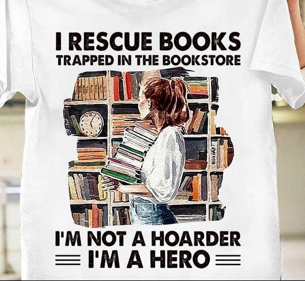 I Rescue Books Trapped In The Bookstore I'm Not A Hoarder I'm A Hero Lady Girl Holding Books Shirt