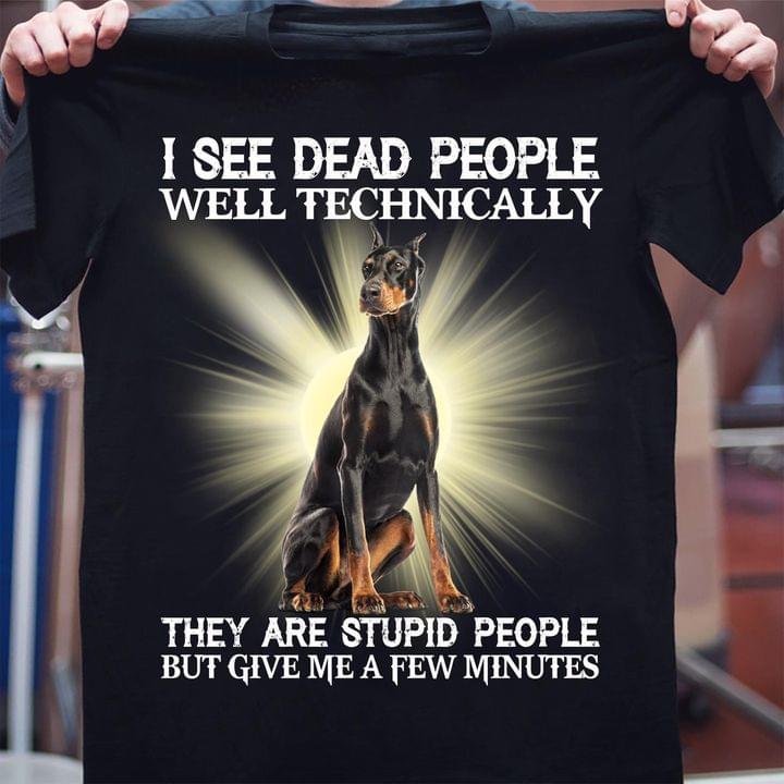 I See Dead People Well Technically They Are Stupid People But Give Me A Few Minutes Dobermann Shirt