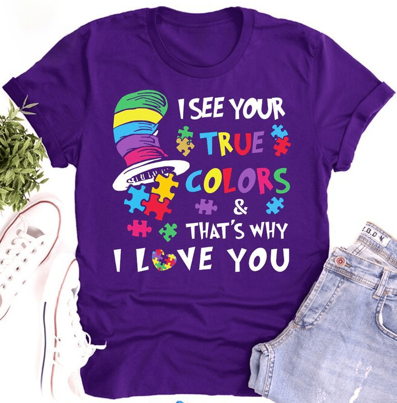 Adore I See Your True Colors and That's Why I Love You, Autism Awareness Acceptance T-Shirt? Turn it into something truly special with our customization options! Pick your favorite design, colors, and style to showcase your individuality, convey a meaningful message, or design the ultimate one-of-a-kind gift.