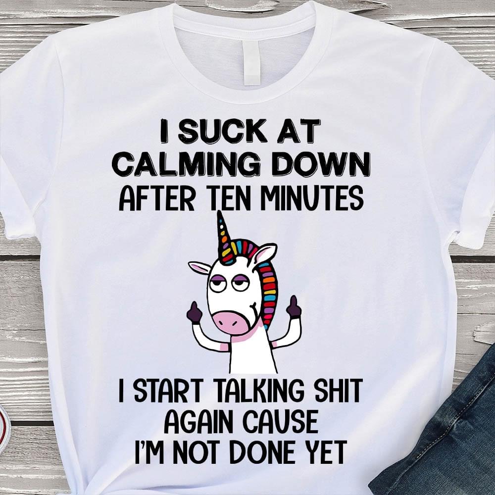 I Suck At Calming Down After Ten Minutes I Start Talking Shit Again Cause I'm Not Done Yet Unicorn Shirt
