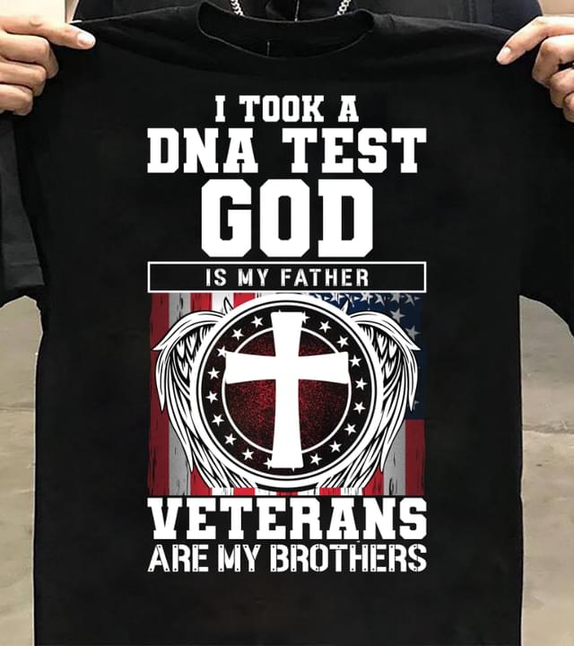I Took A DNA Test God Is My Father Veterans Are My Brothers Flag Of America Angel Wings The Holy Cross Shirt