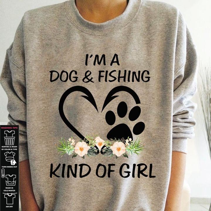 I'm A Dog And Fishing Kind Of Girl Hear Flowers And Dog's Footprint Shirt