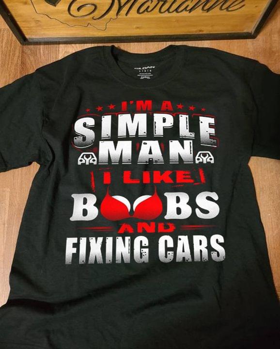 I'm A Simple Man I Like Boobs And Fixing Cars Red Bra Shirt