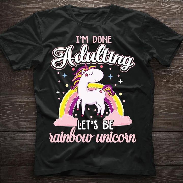 I'm Done Adulting Let's Be Rainbow Unicorn Lovely Animated Unicorn With Rainbow And Rain Shirt
