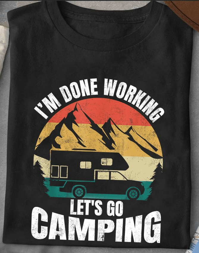 Adore I'm Done Working Let's Go Camping T-Shirt? Turn it into something truly special with our customization options! Pick your favorite design, colors, and style to showcase your individuality, convey a meaningful message, or design the ultimate one-of-a-kind gift.