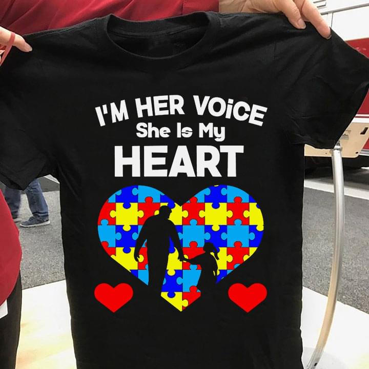 I'm Her Voice She Is My Heart Dad Taking Daughter Autism Heart Shirt