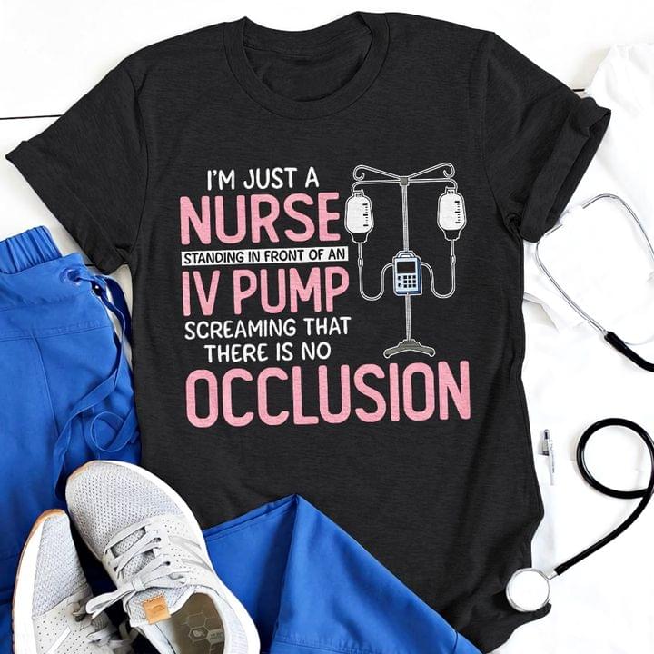 I'm Just A Nurse Standing In Front Of An IV Pump Occlusion T-Shirt Sweatshirt Hoodie
