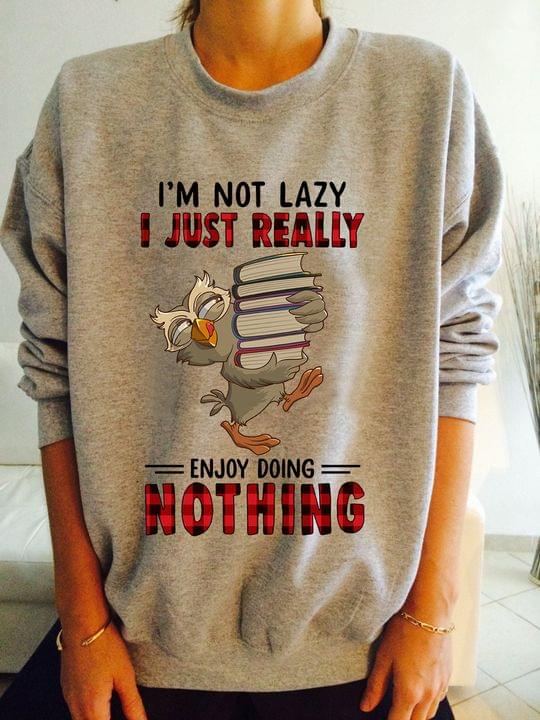 I'm Not Lazy I Just Really Enjoy Doing Nothing Cartoon Owl Holding Books Shirt