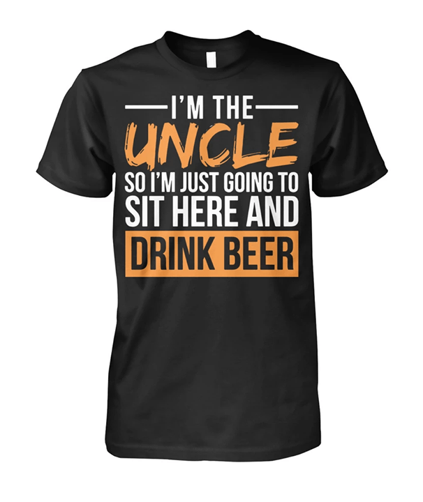 Adore I'm The Uncle So I'm Just Going To Sit Here And Drink Beer Shirt? Turn it into something truly special with our customization options! Pick your favorite design, colors, and style to showcase your individuality, convey a meaningful message, or design the ultimate one-of-a-kind gift.