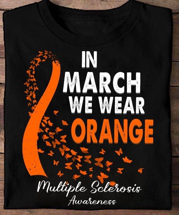 In March We Wear Orange Multiple Sclerosis Awareness Orange Butterflies Ribbon Shirt