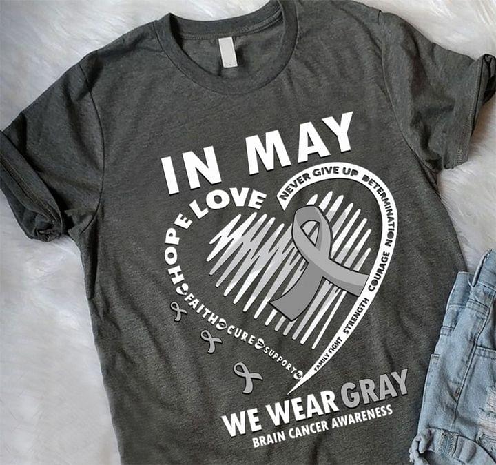 In May We Wear Gray Brain Cancer Awareness Grey Heart Ribbons Shirt