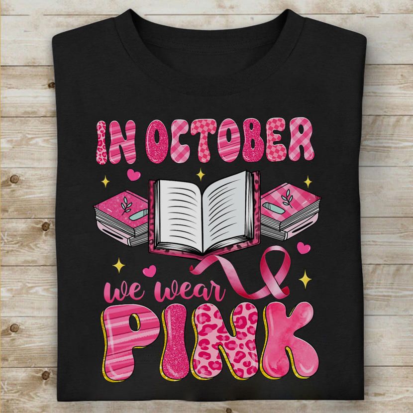 In October We Wear Pink, Breast Cancer Awareness Book Lover Cancer Support Shirt