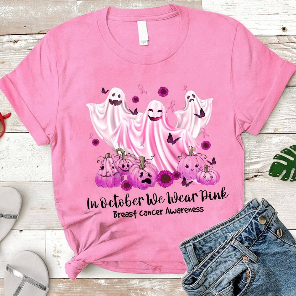 In October We Wear Pink Breast Cancer Awareness, Halloween Ghost Shirt