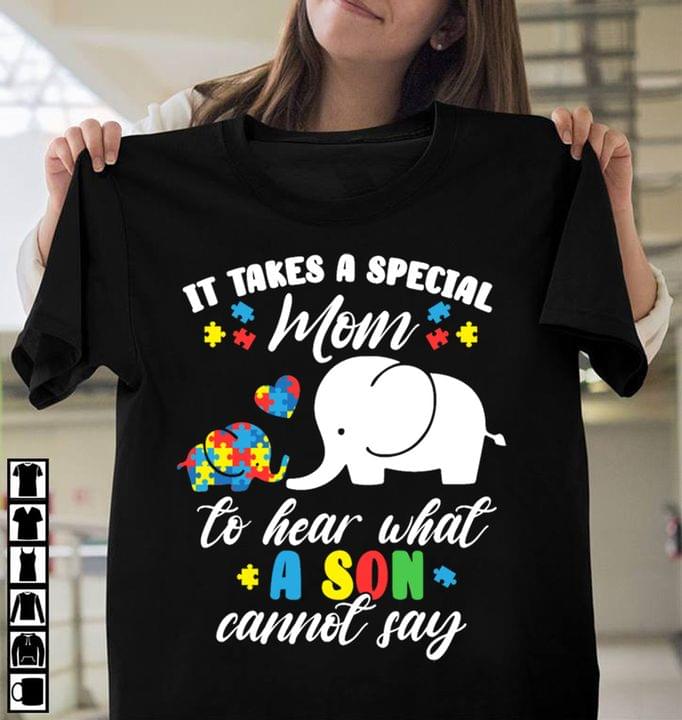 It Takes A Special Mom To Hear What A Son Cannot Say Cartoon Mama Elephant And Her Autism Son Autism Heart Puzzles Shirt