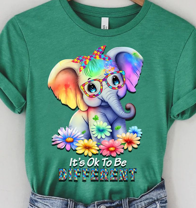 It's Ok to be Different, Cute Elephant Autism Support T-Shirt