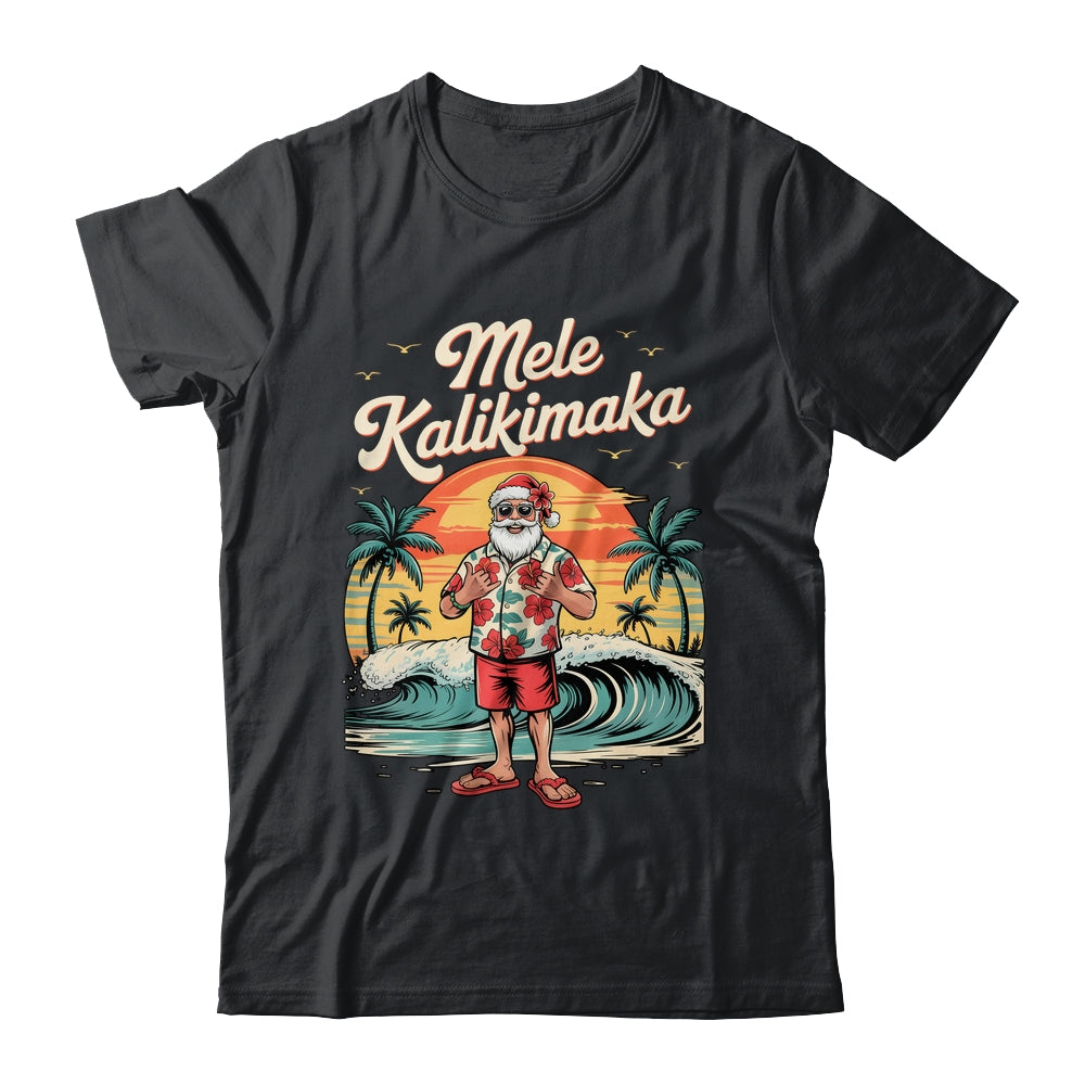 Retro Christmas Surf Mele Kalikimaka Santa Shaka Sign Hawaii