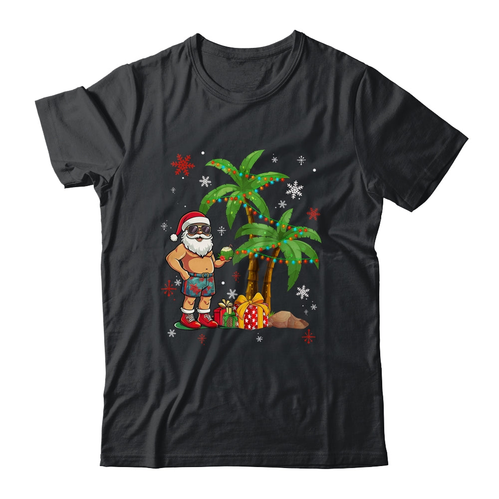 Santa Hawaiian Hawaii Christmas Palm Tree Lights Xmas Funny